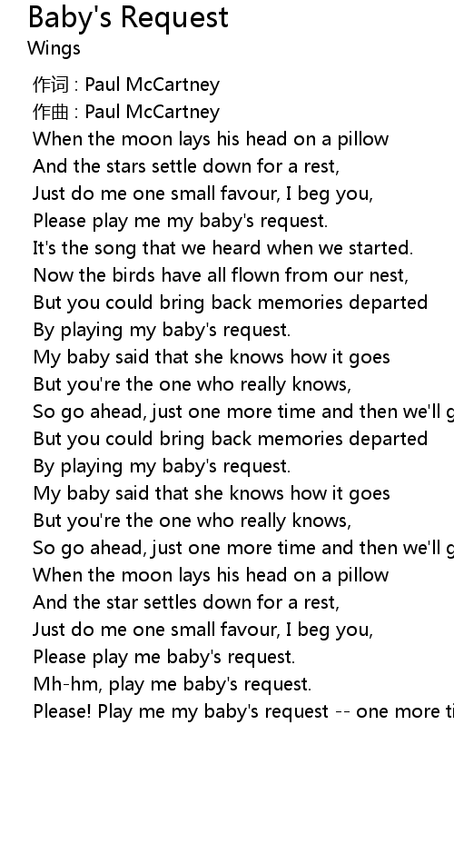 | [00:31.912] | Please play me my baby' s request. |