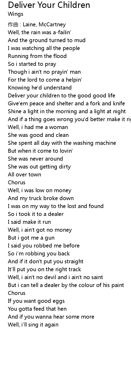 | Deliver your children to the good good life | |