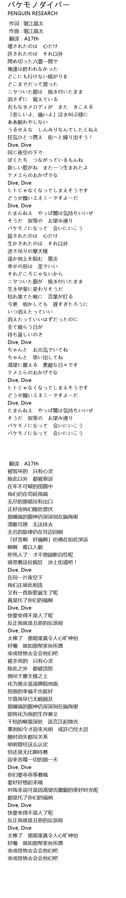 | [01:14.41] | Dive, Dive |