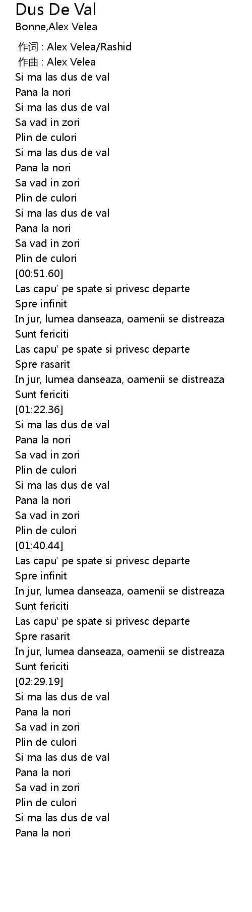 | [00:01.00] | zuo qu : Alex Velea |