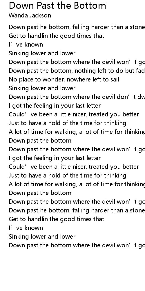 | Song | Down Past the Bottom |