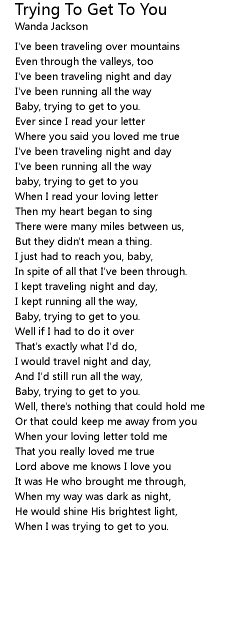 baby, trying to get to you |