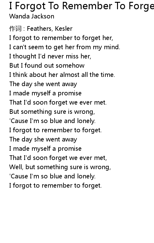 | I forgot to remember to forget her, | |