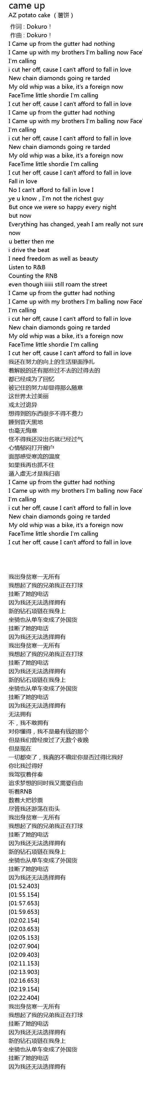 | [02:27.904] | I Came up with my brothers I' m balling now FaceTime little shordie |