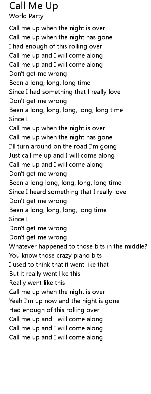 Call me up when the night has gone |