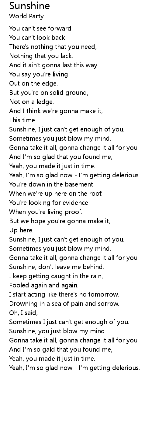 Sunshine, I just can't get enough of you. |