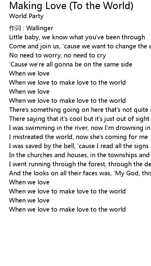 | When we love to make love to the world | |
