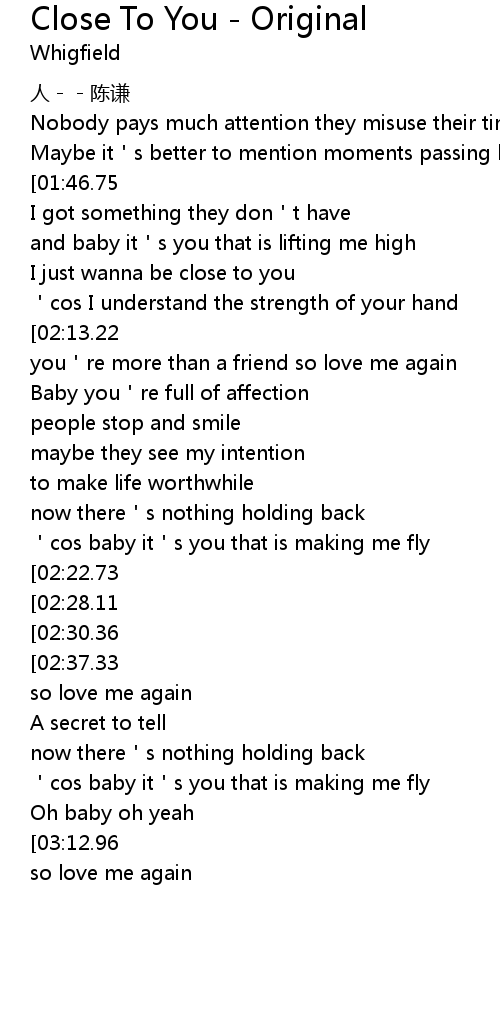 | [02:03.51][02:22.73][03:19.24] | I just wanna be close to you |