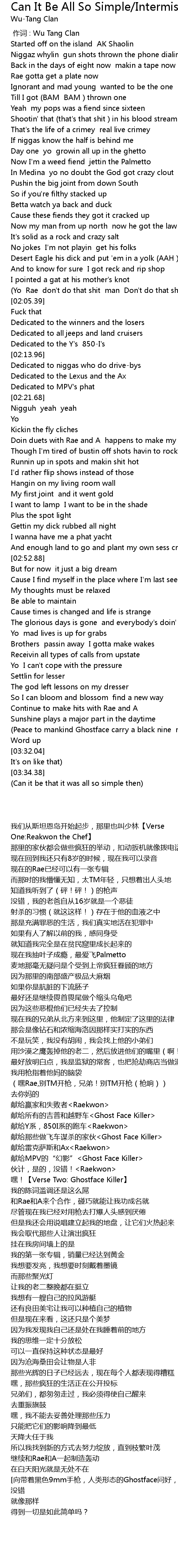| [00:00.00] | 作词 : Wu Tang Clan |