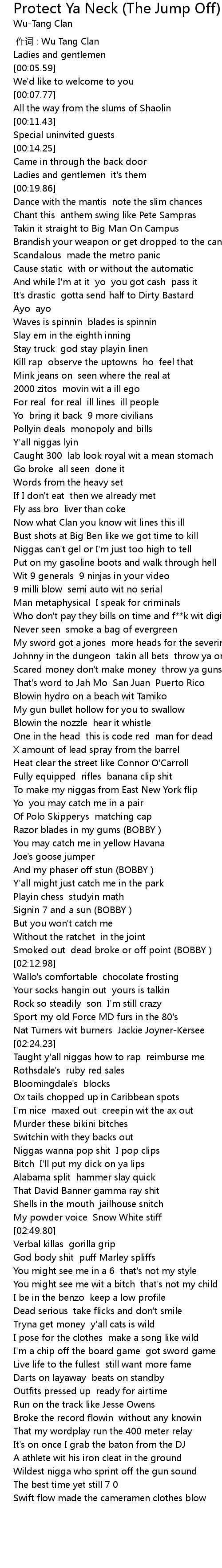 | [00:00.00] | 作词 : Wu Tang Clan |