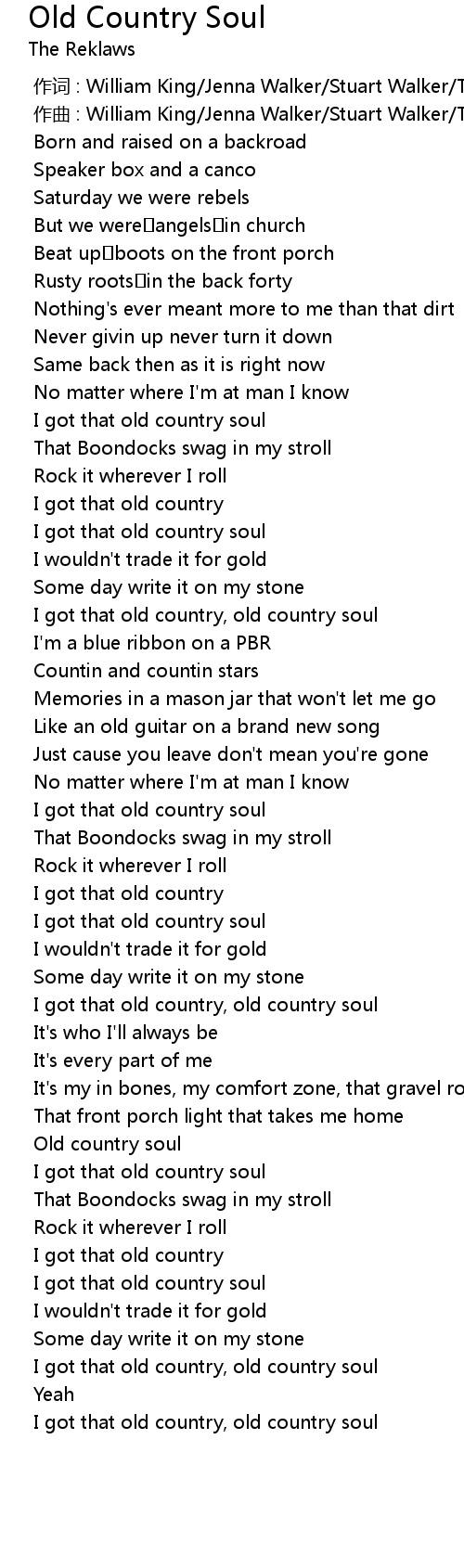 | [01:48.114] | It' s my in bones, my comfort zone, that gravel road |