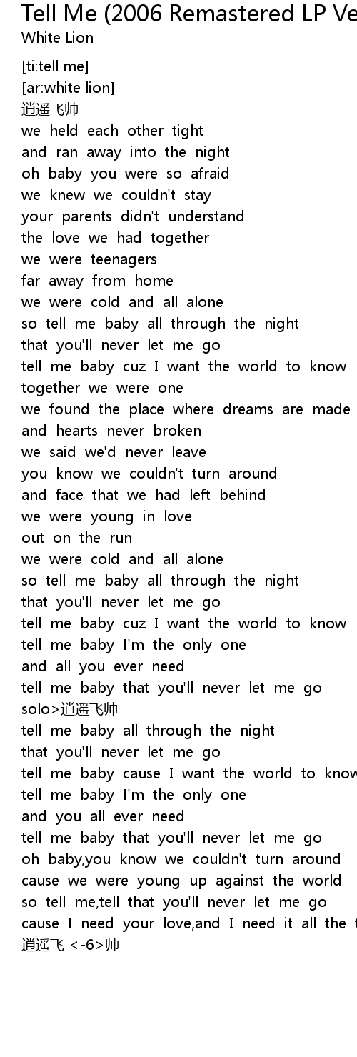 | [04:06.88] | so tell me,tell that you'll never let me go |