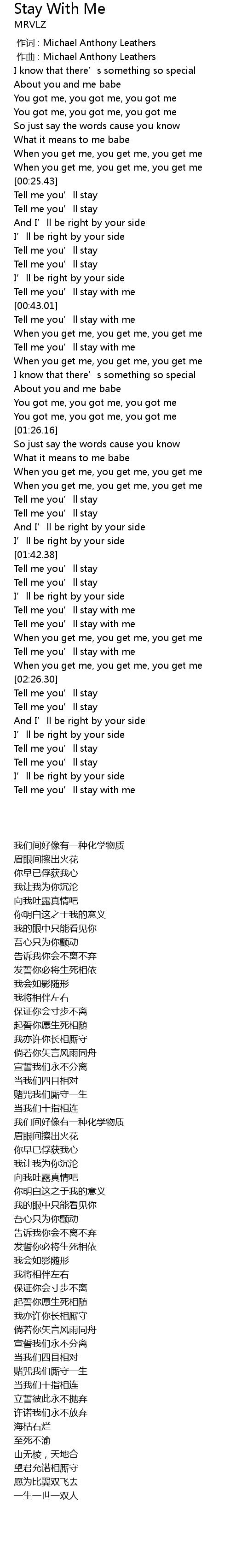 | [02:16.38] | Tell me you’ll stay with me |