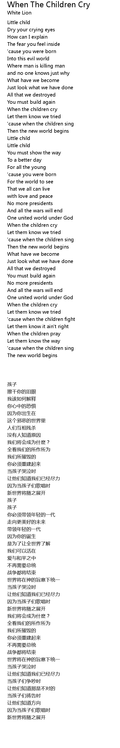 | Song | When The Children Cry |