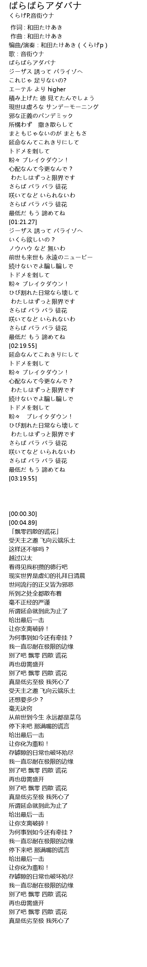 | [02:04.26] | さらば バラ バラ 徒花 |