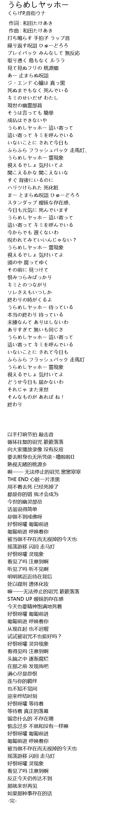 | [02:17.180] | うらめしヤッホー 待っている |