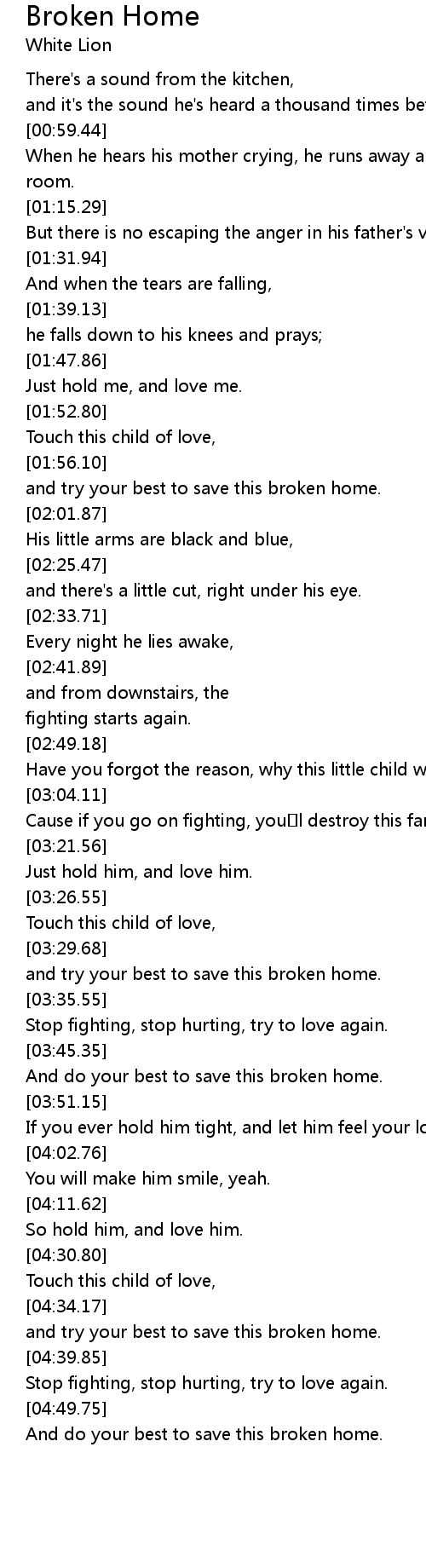 | [04:42.80] | Stop fighting, stop hurting, try to love again. |