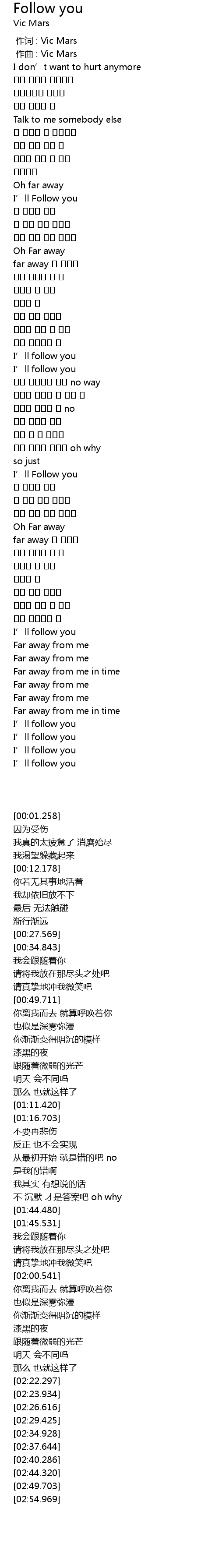 | [00:00.000] | 作词 : Vic Mars |