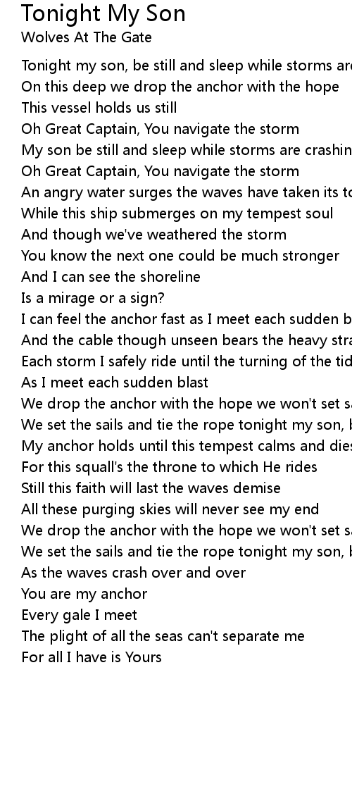 Tonight my son, be still and sleep while storms are crashing |