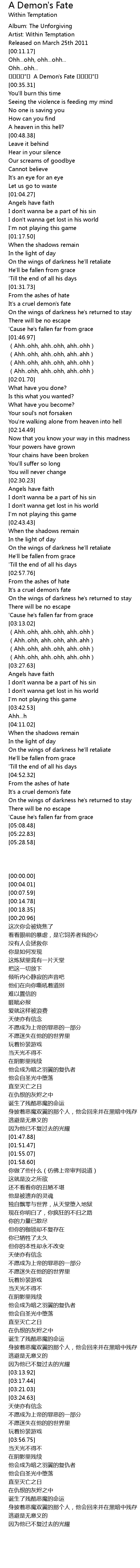 | [00:20.96] | A Demon' s Fate |