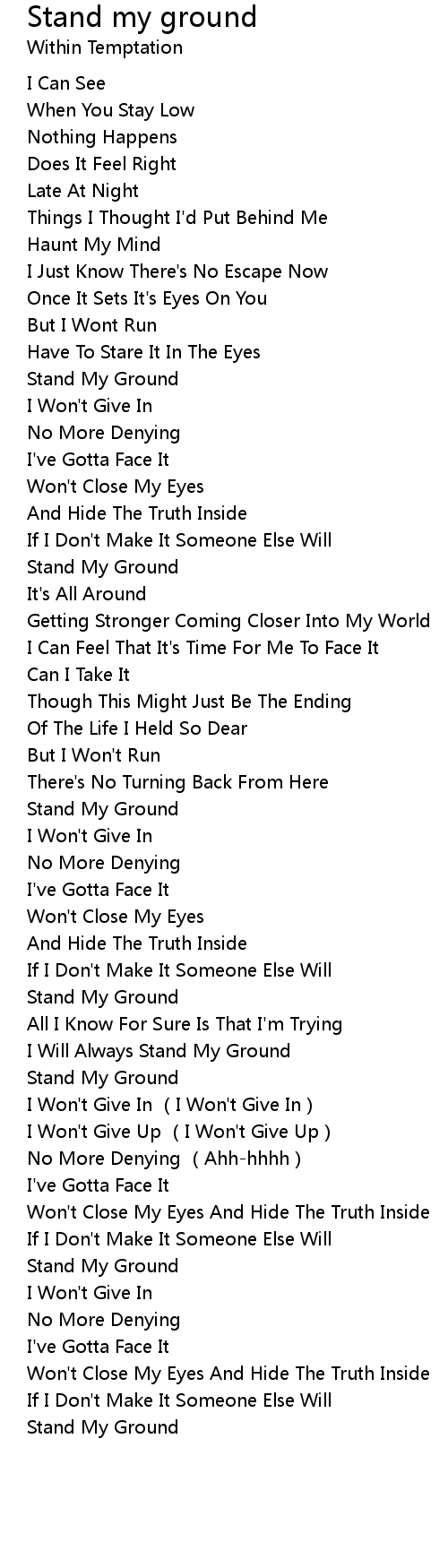| [01:49.70] | Stand My Ground |