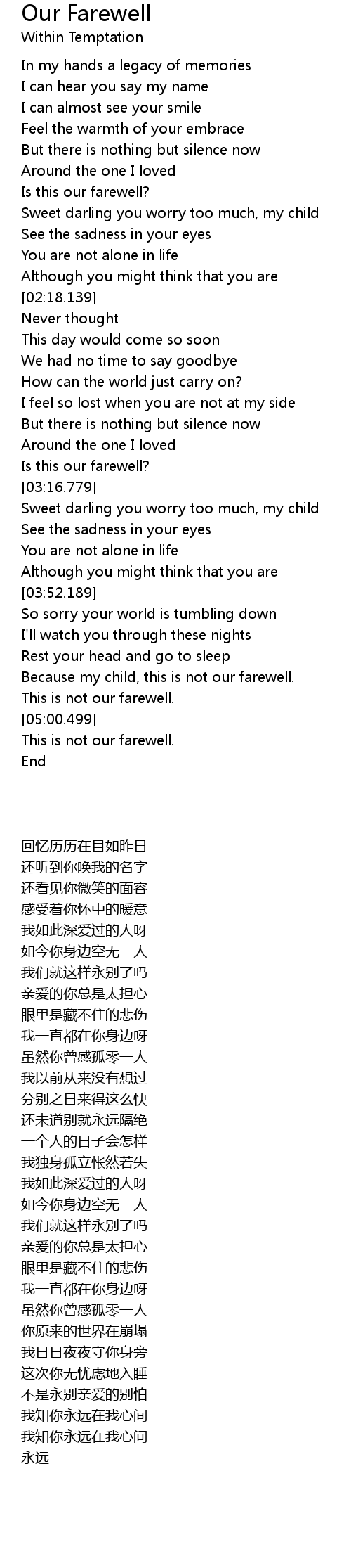 Because my child, this is not our farewell. |