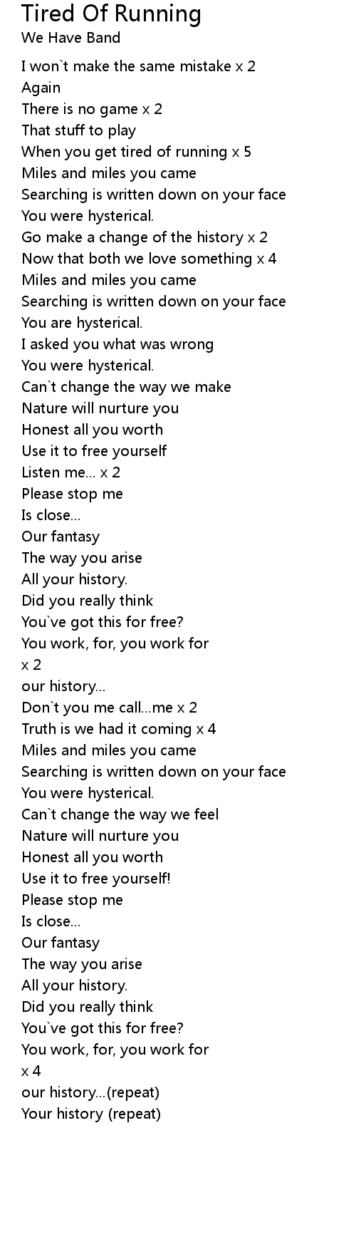 Tired Of Running Lyrics
