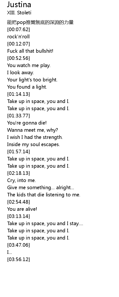 | [03:38.27] | Take up in space, you and I. |