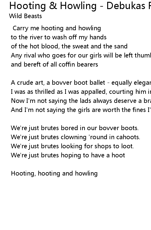 Carry me hooting and howling |