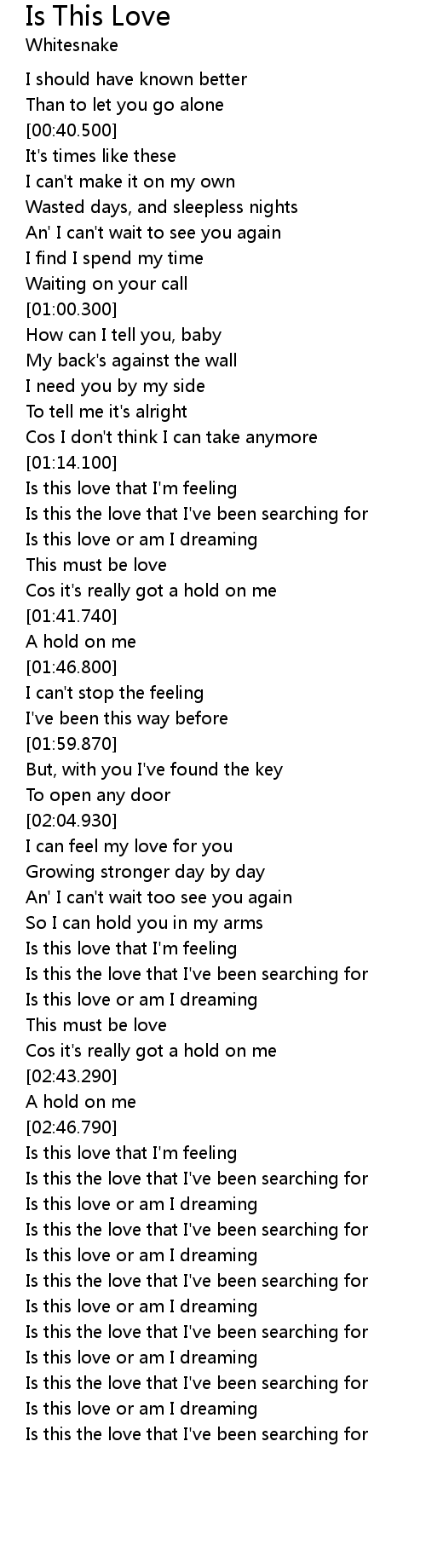 | [03:45.450] | Is this the love that I' ve been searching for |