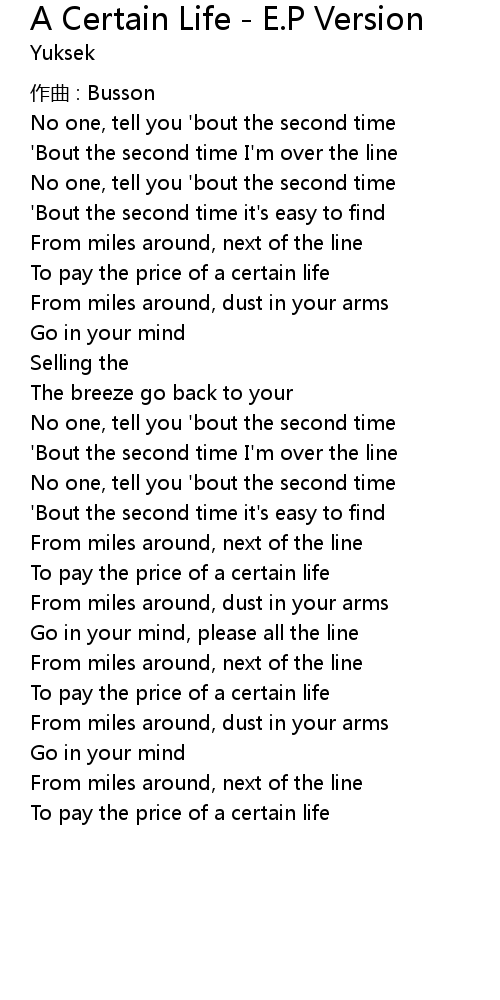 | Song | A Certain Life - E.P Version |