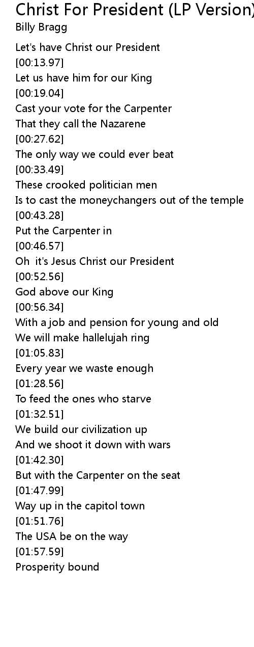 Oh it's Jesus Christ our President |