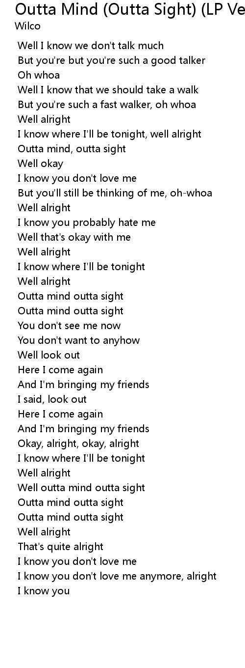 Well outta mind outta sight |