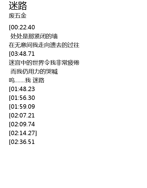 | [02:58.40][01:48.23] | wo yi wei hui xian ru wu zhi jing de mi wu |