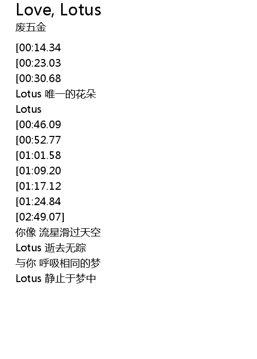 | [01:55.77] | Lotus 静止于梦中 |
