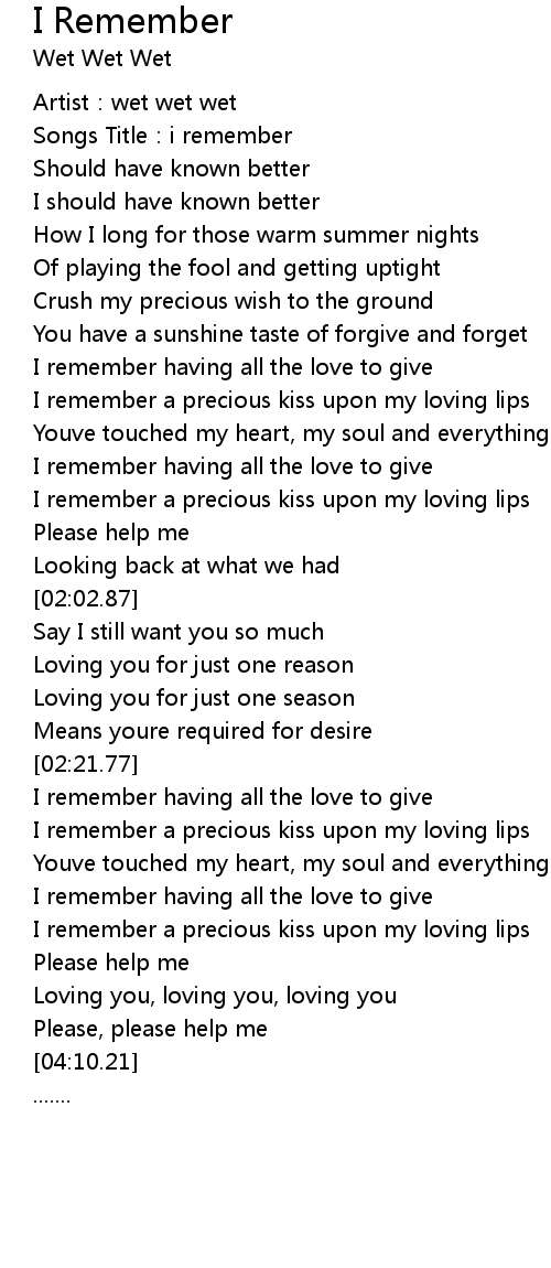 | [02:28.98] | I remember a precious kiss upon my loving lips |