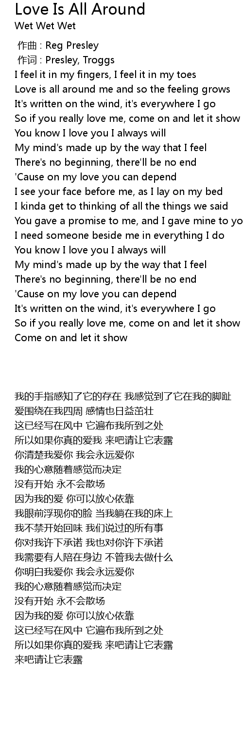 | [00:23.14] | Love is all around me and so the feeling grows |