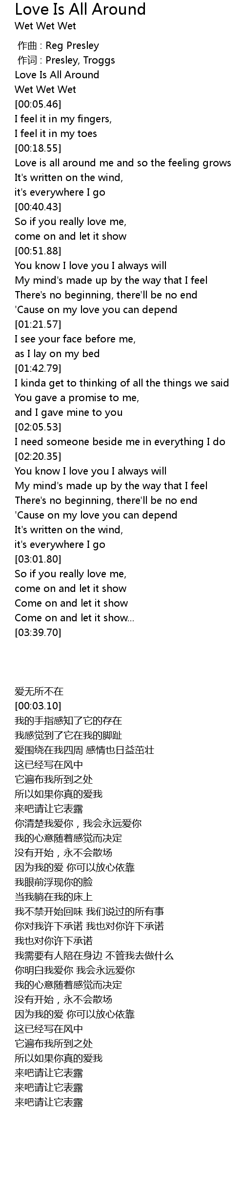| [00:23.09] | Love is all around me and so the feeling grows |
