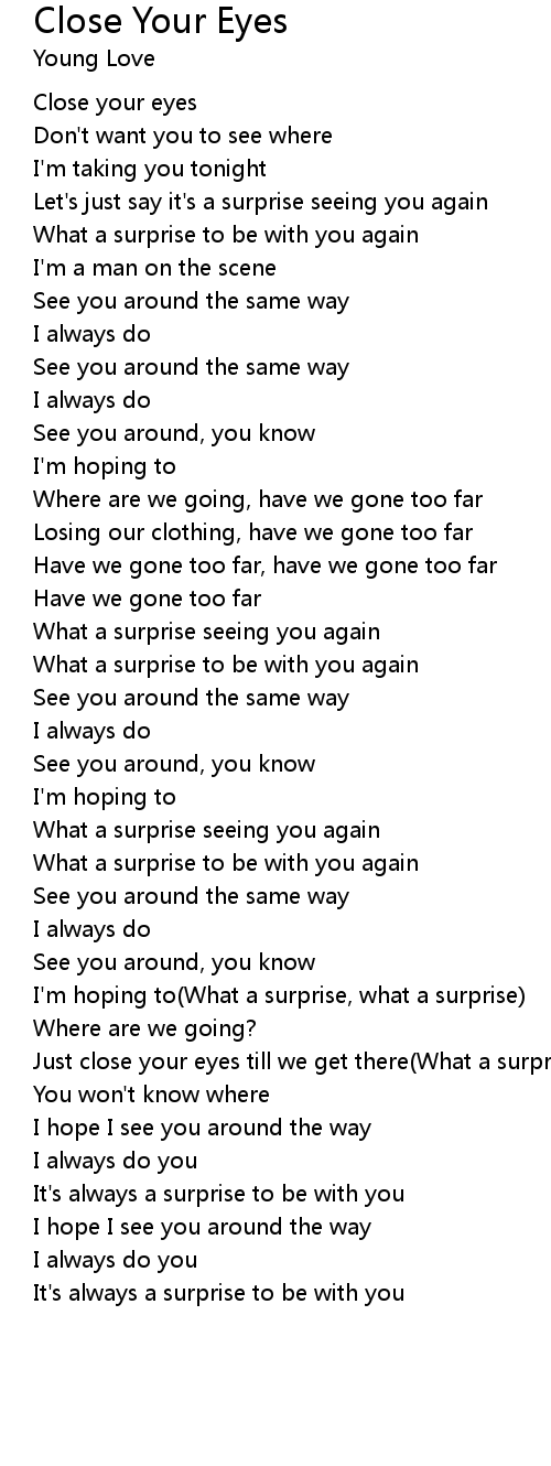 Just close your eyes till we get there(What a surprise, what a surprise) |