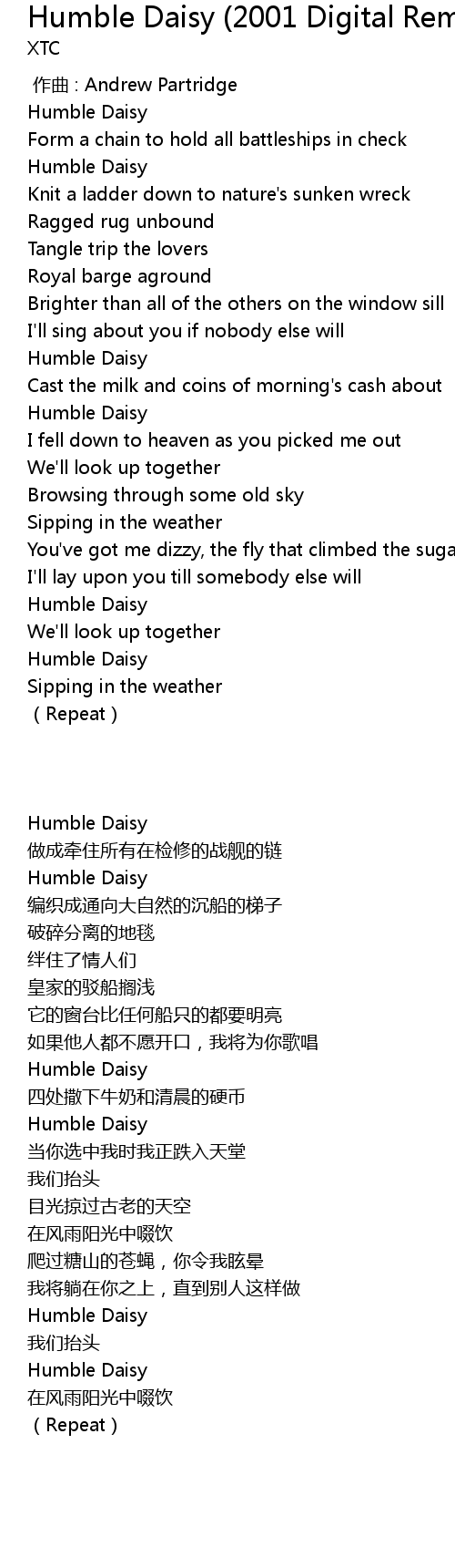 | [01:35.412] | Humble Daisy |