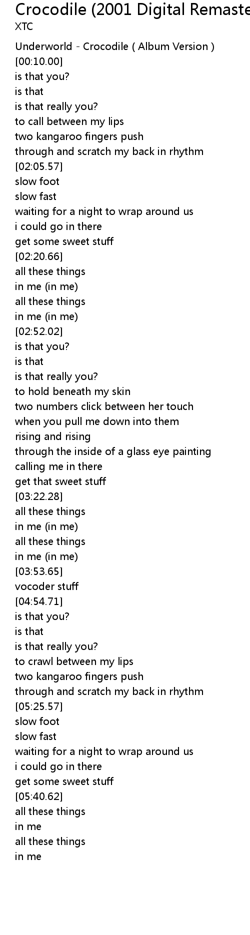 | [00:00.00] | Underworld - Crocodile ( Album Version ) |