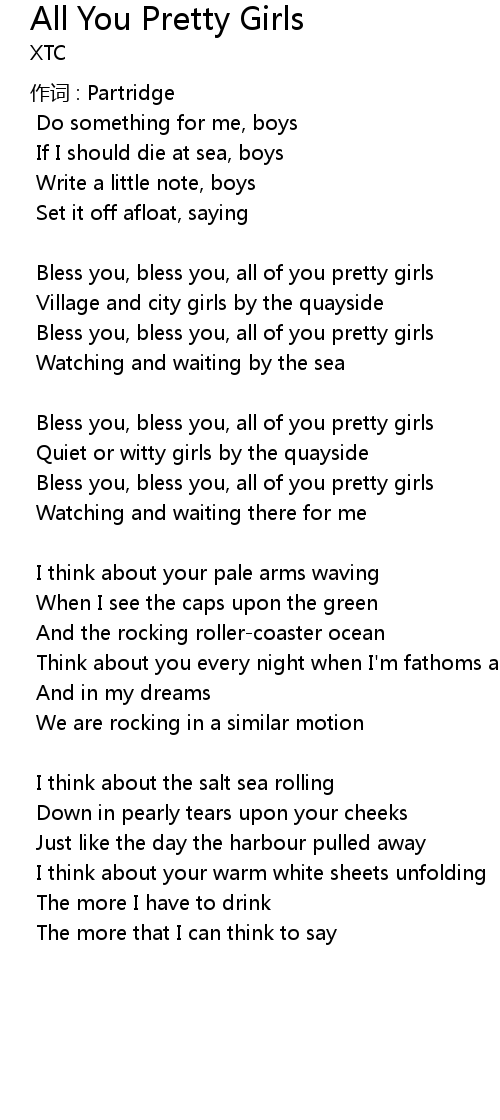 | Bless you, bless you, all of you pretty girls | |