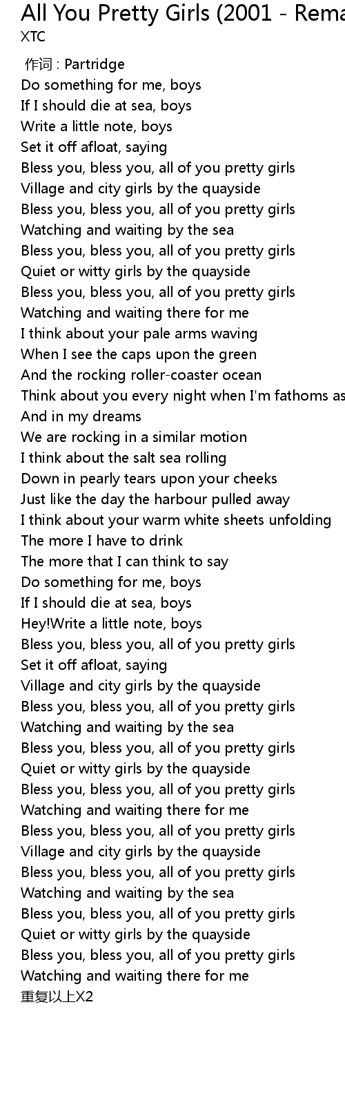 | [00:31.400] | Bless you, bless you, all of you pretty girls |