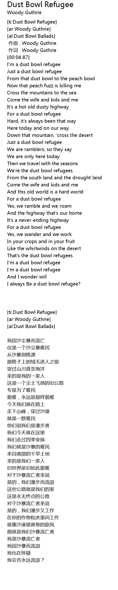 | [02:52.03] | I always Be a dust bowl refugee? |