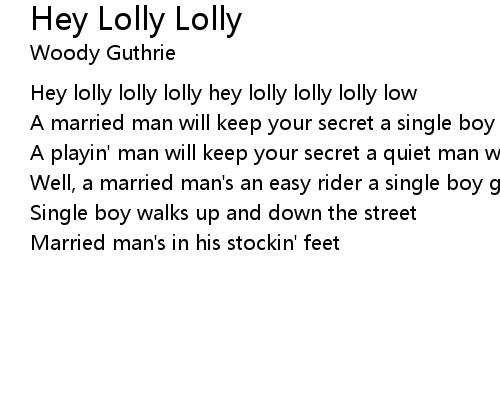 | Hey lolly lolly lolly hey lolly lolly lolly low | |