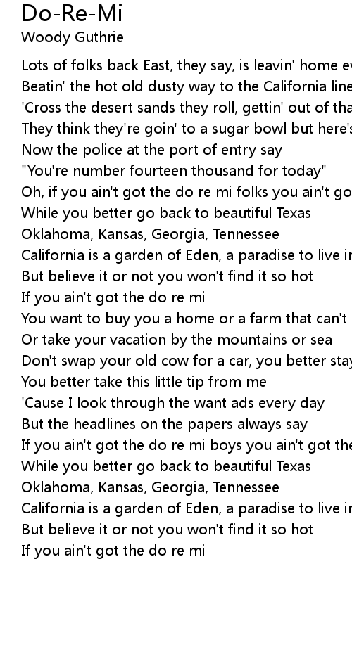 Oh, if you ain't got the do re mi folks you ain't got the do re mi |