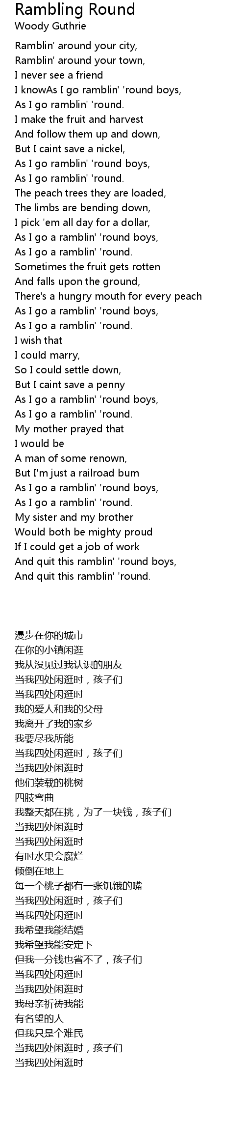 As I go ramblin' 'round. |