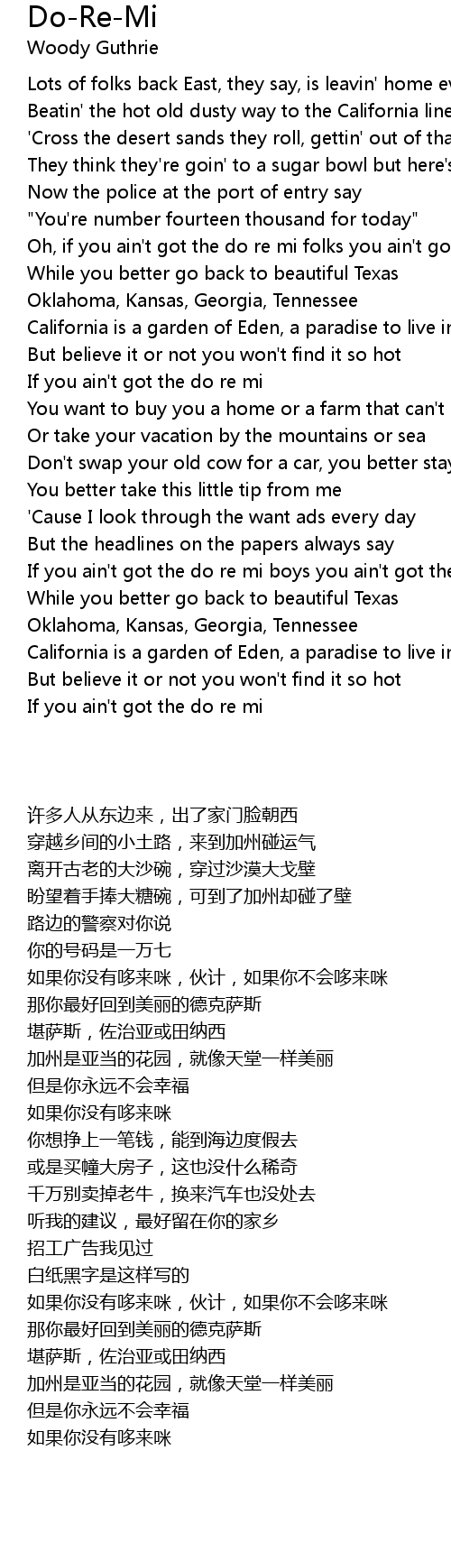 Oh, if you ain't got the do re mi folks you ain't got the do re mi |