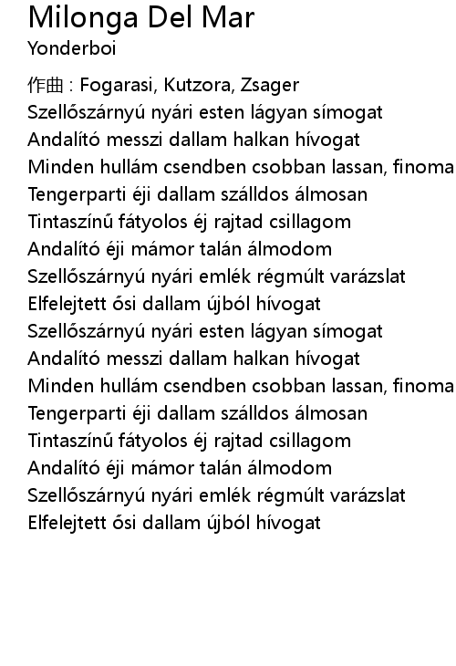 | Tengerparti éji dallam szálldos álmosan | |