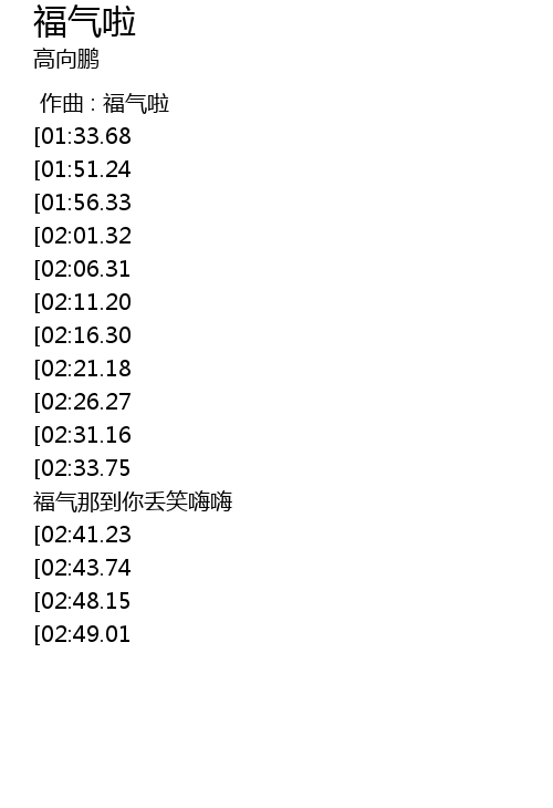| [00:02.91][01:33.68][03:38.81] | <<福气啦>> |